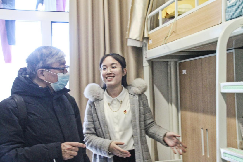 随后,麻国庆副校长一行走访了学生宿舍,亲切慰问学院同学,并了解学生学习的生活情况。