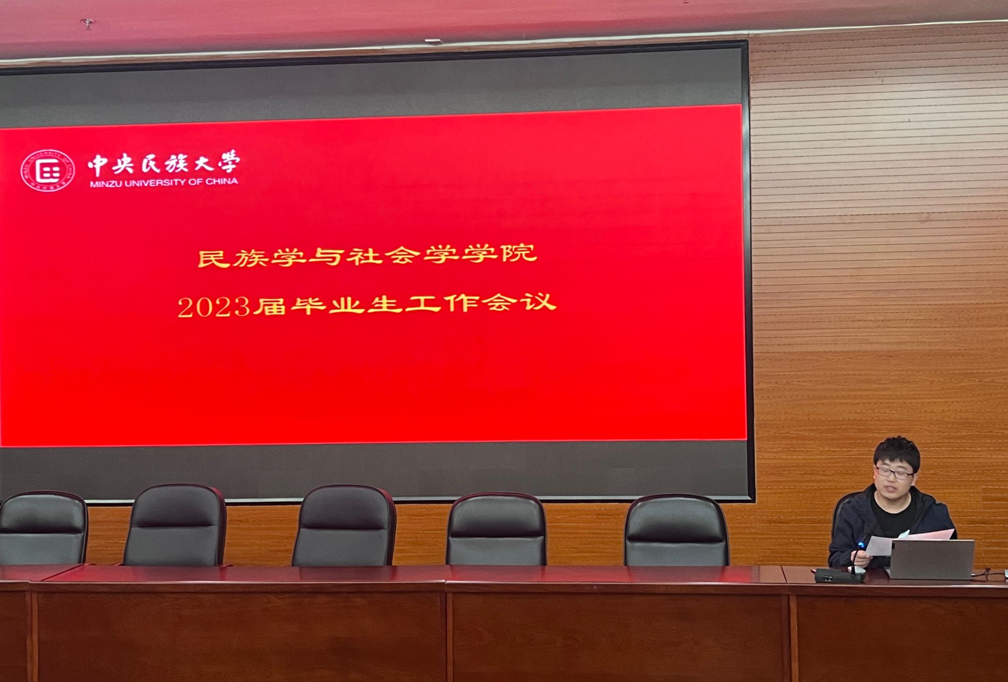在海淀校区文华楼一层报告厅召开2023届毕业生工作会议。学院党委书记王洁、副书记张肜肜、党团与学生工作办公室主任李依霖、团委书记康佳妮、专职辅导员刘丽艳、张宗友、梁雅清、于小杰出席了本次会议,部分未在校毕业生通过腾讯会议线上参加。会议由李依霖主持。