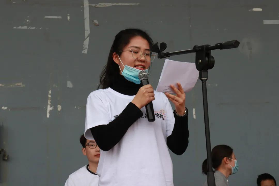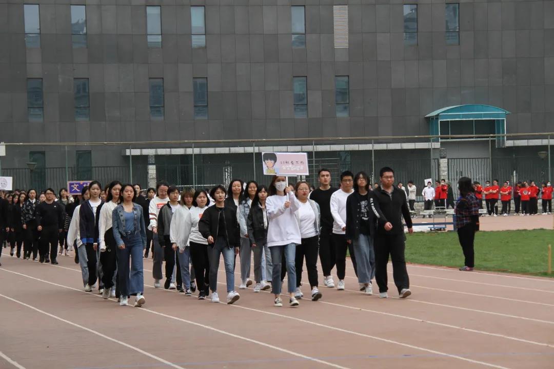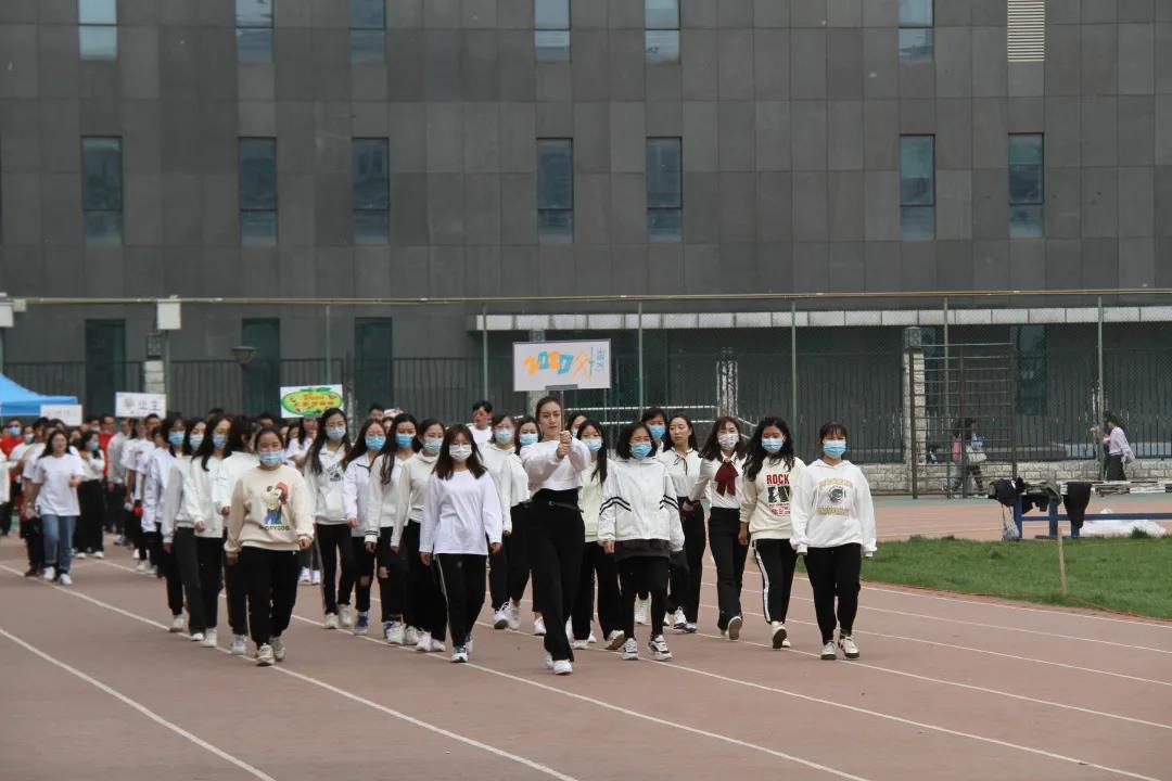 接下来,党委书记王洁老师为开幕式致辞。在致辞中,王洁老师强调⼀年⼀度的春季运动会是贯彻习近平总书记“健康中国2030”指示精神和学院“三全育人”精神的重要举措。本届运动会阵容强⼤,共有28个班级,200多名运动员,是规模空前的⼀次运动盛会。