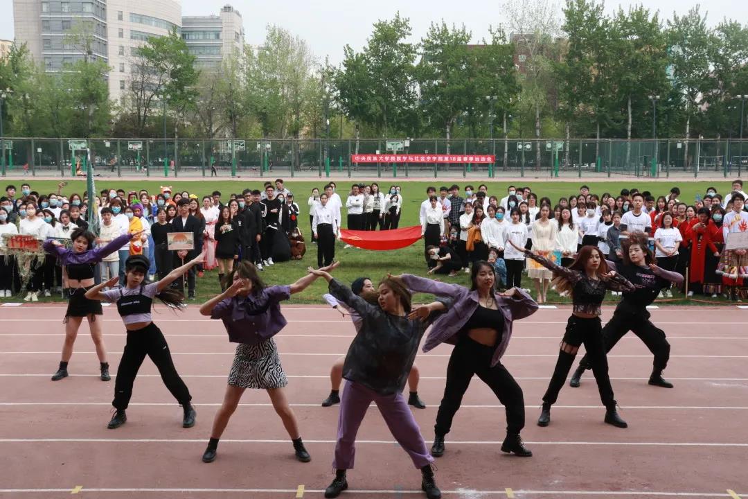 ⽅阵表演结束后,民社学子带来了青春四射的开场舞串烧,点燃了大家的运动热情。