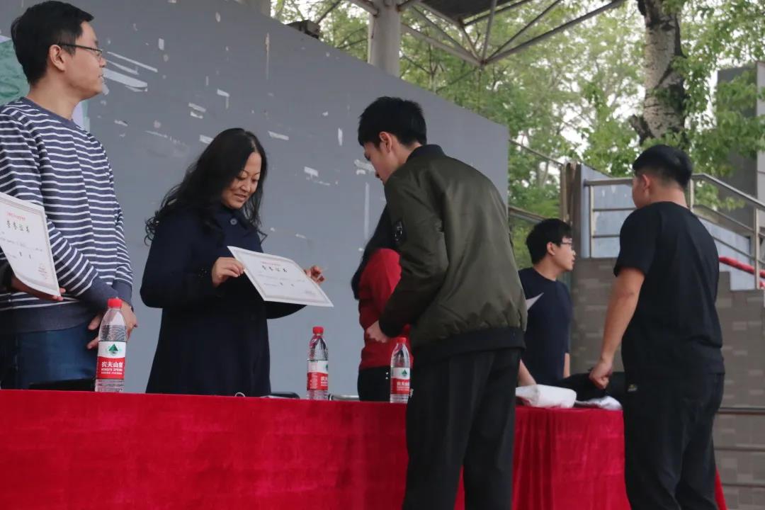 运动会闭幕式于下午17时40分举行。首先主持人宣布了各项比赛的成绩与精神⽂明奖获奖班级,党委书记王洁老师、党委副书记张肜肜老师以及出席闭幕式的学院各专业教师代表为获得精神文明奖的班级和团体总分前三名的班级颁发了奖状。